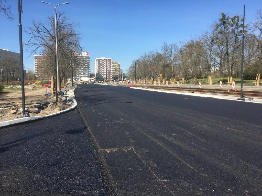 Na al. św. Jana Pawła II obecnie trwają prace przy wykonaniu torowiska i asfaltowaniu jezdni. Po świętach wielkanocnych planuje się rozpoczęcie robót na sąsiedniej jezdni.