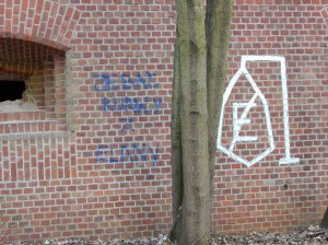 Problem z wandalami pozostawiającymi po sobie „pseudo graffiti” jest znany nie od dziś. Wizytówki „ulicznych artystów” spotkamy w wielu często zaniedbywanych, opuszczonych miejscach. Przykładem mogą być toruńskie forty, z których większość – przez bierność właścicieli – pozostawiona jest na pastwę losu. Od wielu lat toruńskie zabytki architektury militarnej odwiedzają nie tylko pasjonaci fortyfikacji, ale także… pseudo (co warto podkreślić) kibice i. Niestety ci lubią pozostawiać po sobie ślady. Takie pojawiły się ostatnio na murach Fortu VII.