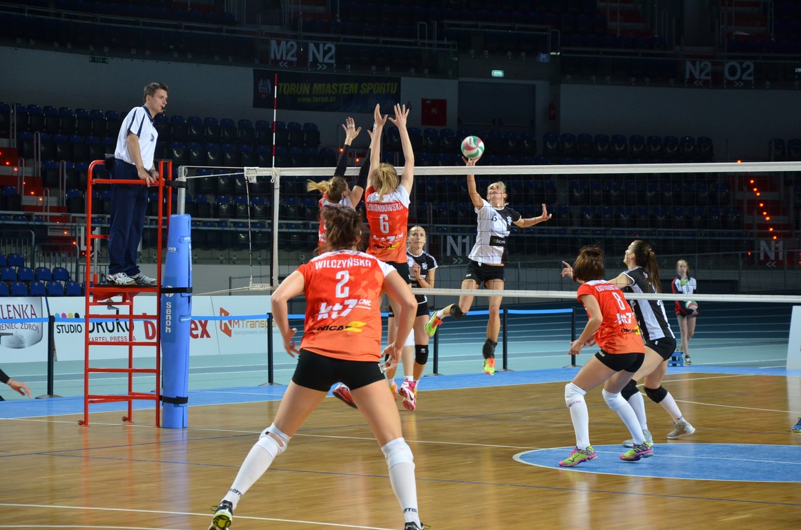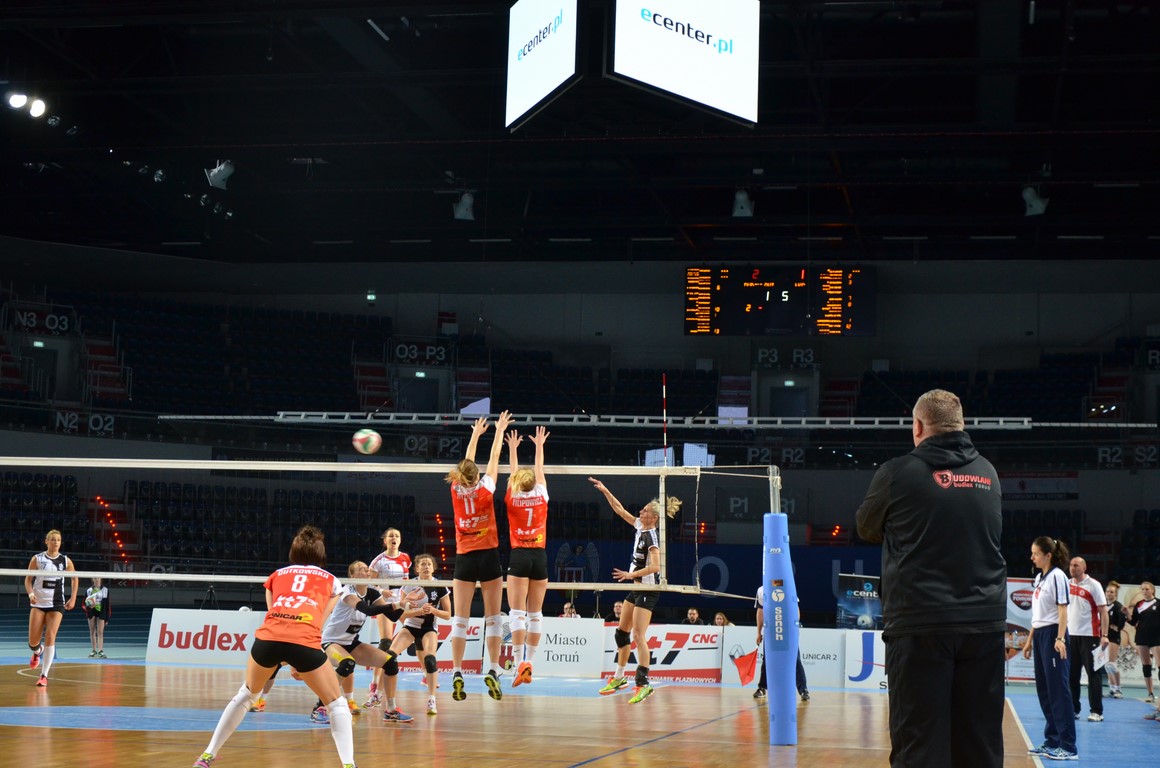 Początek pierwszego seta nie zwiastował wyrównanego widowiska. Łodzianki wyraźnie wytrąciły rywalki z równowagi i szybko uzyskały wysoką przewagę, którą – mimo późniejszego oporu KT7 CNC Budowlanych – utrzymały do końca. Gra gospodyń z upływem kolejnych minut uległa poprawie, a przewaga zmalała na tyle, by można myśleć nawet o zwycięstwie w tej partii. Zespół gości nie pozostawił jednak złudzeń i wygrał premierową odsłonę do 23. Torunianki – podbudowane całkiem udaną końcówką w poprzedniej partii – po zmianie stron ruszyły do mocnego natarcia, efektem czego wypracowały przewagę i przez długi czas kontrolowały grę. W końcówce w toruńskiej ekipie fantastycznie funkcjonował blok, dzięki czemu udało się zatrzymać ataki zabójczo skutecznej Katarzyny Brydy. Toruniankom udało się odgryźć i wyrównać stan na 1:1.